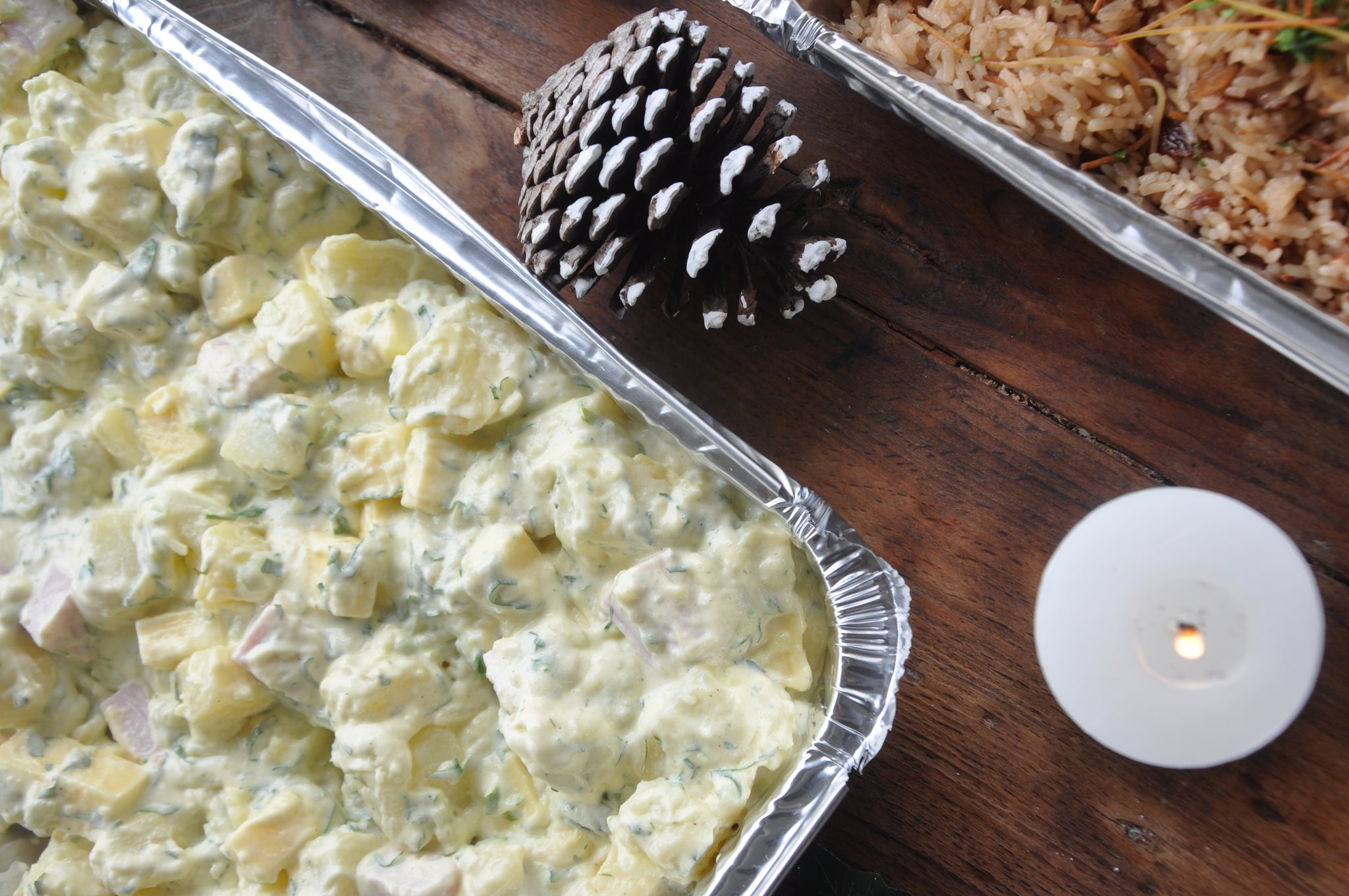 DESCRIPCIÓN: Qué rica es la ensalada de papa! En distintas versiones está presente en nuestras navidades. Esta receta tiene trozos de papa blanca cocida al dente, mayonesa, trozos de jamón, apio, dados de queso Gouda y perejil.